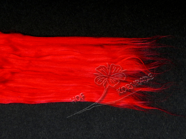 A nice red. As a nice effect for spinning and felting. Silk alone does not felt, in combination with wool it creates very nice color effects.